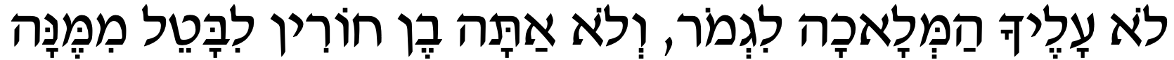 Rabbi Tarfon, a scholar who lived at the end of the first century, and witnessed the destruction of the second Temple in Jerusalem, used to say: