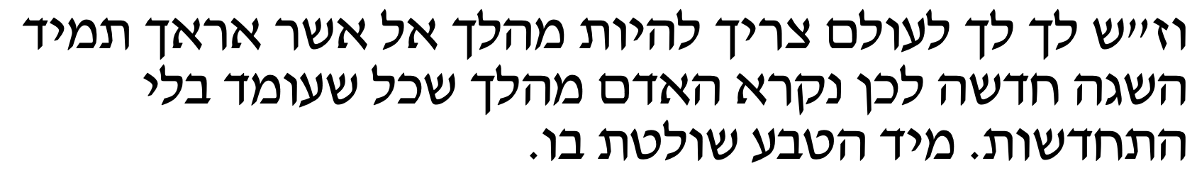For the Sefat Emet, Avram’s journey wasn’t one of simply moving from place to place, nor was he commended simply for obeying God. Rather, Avram was heeding the call that God makes of each and every one of us: be willing to embrace a life of constant spiritual striving.