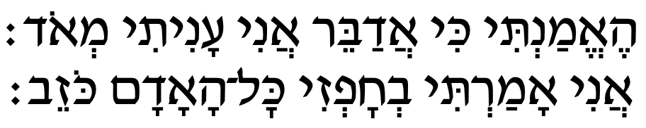 – Because I was sorely afflicted, I said in my rashness, ‘All humankind is false.’