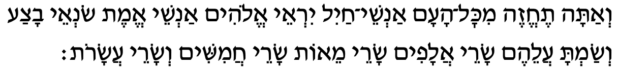 . That moniker, anshei chayil, could be more literally translated as “strong individuals.” Chayil is a word often associated with militaristic might and physical power. Singling it out here, the text seems to want us to understand that these leaders Moses is seeking out shouldn’t just be ethically, spiritually, and truthfully minded; they should also be strong.
